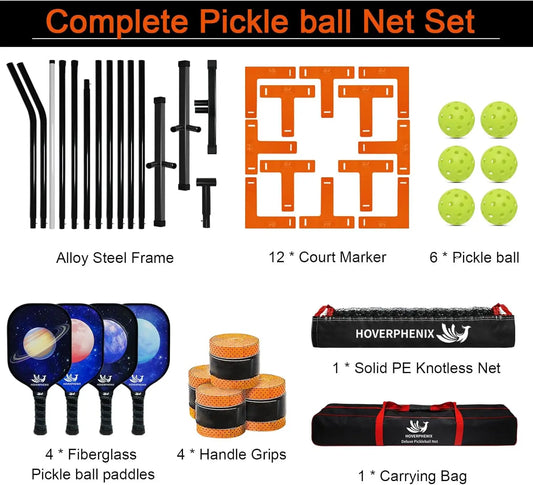 Portable Pickleball Set with Net and Paddle Set of 4, Outdoor Pickleballs, Carry Bag, Weather Resistant